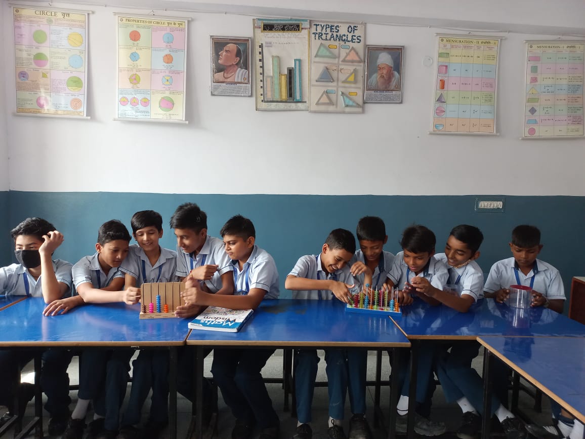It is a place where students can learn and explore various mathematics concepts and verify various mathematical facts and theorems using variety of activities and it is well equipped with necessary kits and tools. It provides an opportunity to the students to understand and internalize the basic mathematical concepts through concrete objects and situations.
